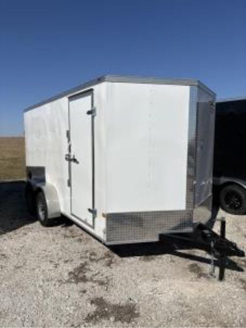 2-3500LB Brake Axles - 6'6” Interior Height - 2-5/16 Coupler - Side Door - Ramp Door W/ 16” Extention - 16” Stoneguard - 4 Wall D-Rings - White